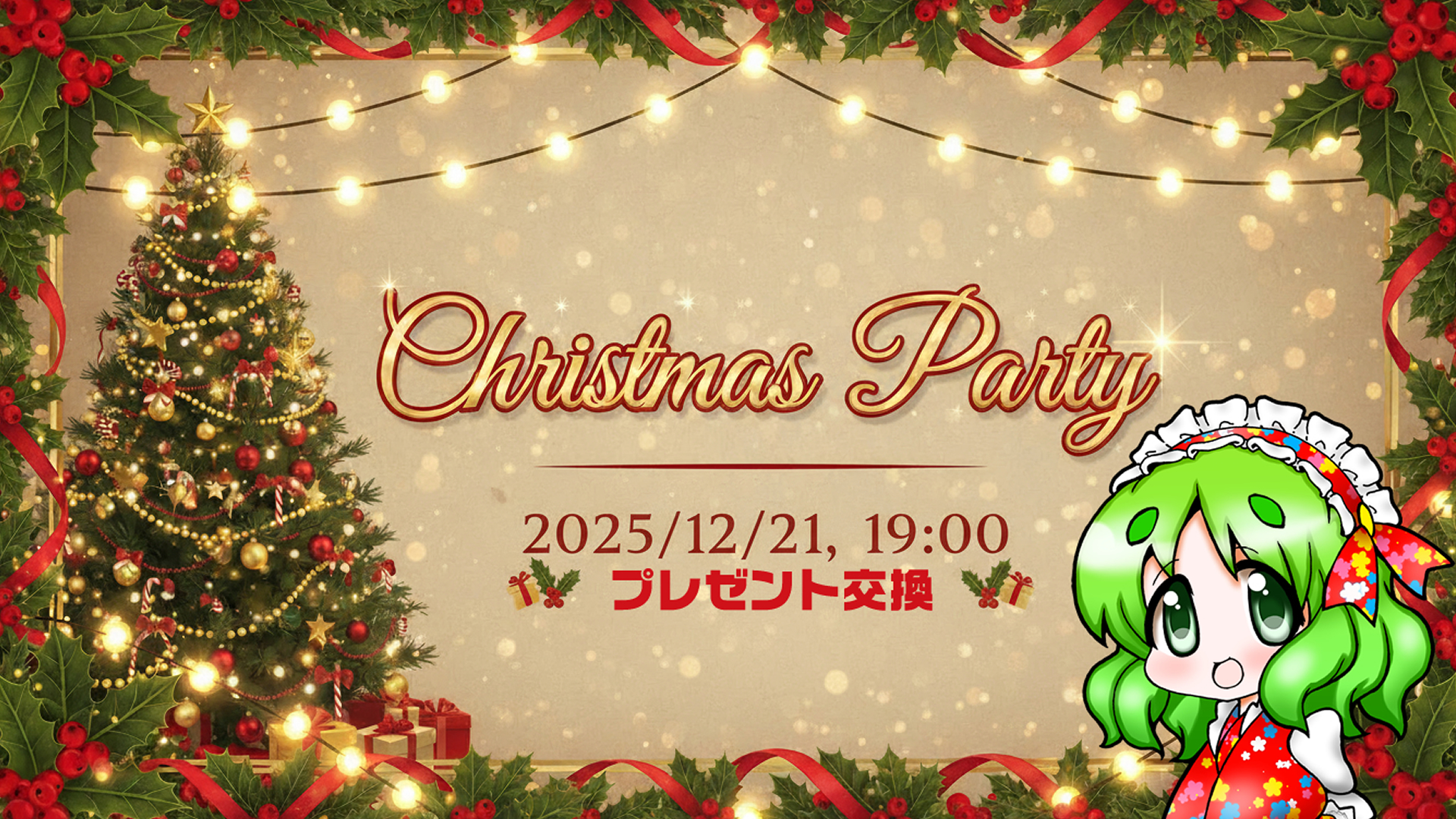 クリスマス会 2025/12/21 19:00~営業 ちょっと早いクリスマス会 毎年恒例のプレゼント交換を行います。 2,000円程度のプレゼントをご用意ください。 ※予約なく参加頂けます。 << 前のページに戻る